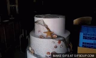 When a giant cake (actually a cake shell) has a person (usually a bachelor party stripper) hidden inside, so he or she can jump out of it for dramatic effect.